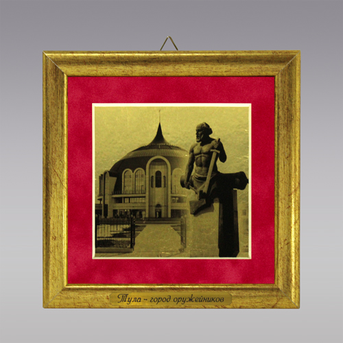 В панно «Тула — город оружейников» применяется сусальное золото, соответствующее следующим требованиям: золото-95,8%, остаток медь и серебро.